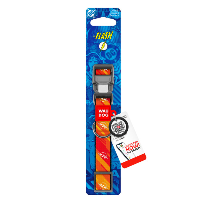 Нашийник для собак нейлоновий WAUDOG Nylon з QR паспортом, світловідбивний, малюнок "Флеш Лого", пластиковий фастекс, M, Ш 20 мм, Дл 28-40 см