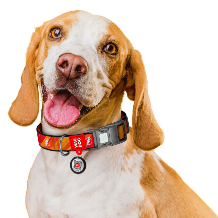 Нашийник для собак нейлоновий WAUDOG Nylon з QR паспортом, світловідбивний, малюнок "Флеш Лого", пластиковий фастекс, XL, Ш 25 мм, Дов 37-58 см
