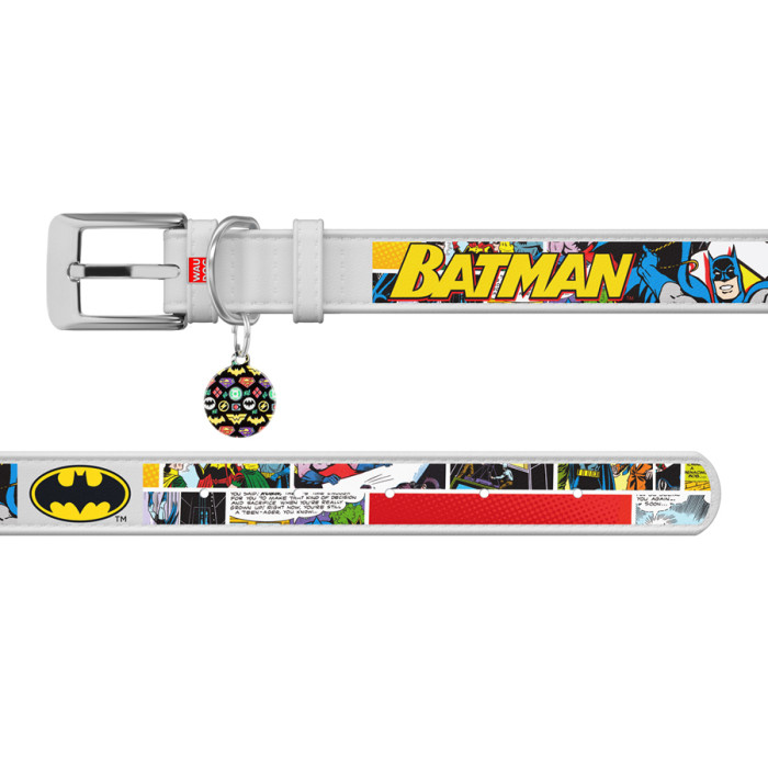 Серія WAUDOG Design доповнюється нашийниками з ліцензійним зображенням героїв фантастичного всесвіту DC Comics. Тепер культова символіка і популярні супергерої будуть красуватися на шкіряній амуніції WAUDOG Design. Завдяки яскравим і привабливим малюнкам ці вироби просто не зможуть залишитися непоміченими. Довжина нашийника підбирається відповідно до обхвату шиї хвостатого друга, який визначають вимірювальною стрічкою. При цьому правильно додавати до отриманого результату від 2 см (для середніх і дрібних порід) до 5 см (для великих), щоб нашийник не натирав і не здавлював шию тварини.