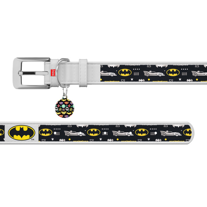 Нашийник для собак шкіряний WAUDOG Design з QR паспортом, малюнок "Бетмен3", M, Ш 20 мм, Дов 29-38 см білий