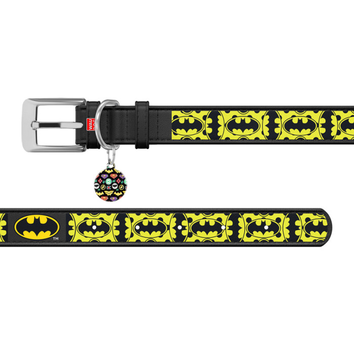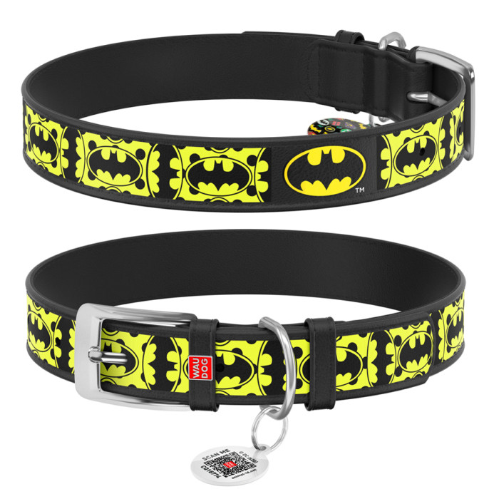 Серія WAUDOG Design доповнюється нашийниками з ліцензійним зображенням героїв фантастичного всесвіту DC Comics. Тепер культова символіка і популярні супергерої будуть красуватися на шкіряній амуніції WAUDOG Design. Завдяки яскравим і привабливим малюнкам ці вироби просто не зможуть залишитися непоміченими. Довжина нашийника підбирається відповідно до обхвату шиї хвостатого друга, який визначають вимірювальною стрічкою. При цьому правильно додавати до отриманого результату від 2 см (для середніх і дрібних порід) до 5 см (для великих), щоб нашийник не натирав і не здавлював шию тварини.