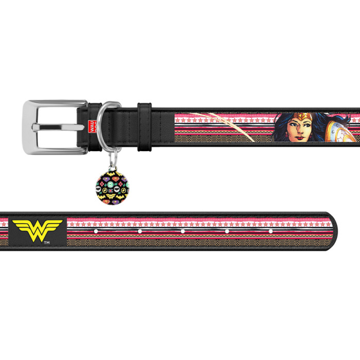 Нашийник для собак шкіряний WAUDOG Design з QR паспортом, малюнок "Чудо-жінка", Ш 35 мм, Дов 46-59 см, чорний