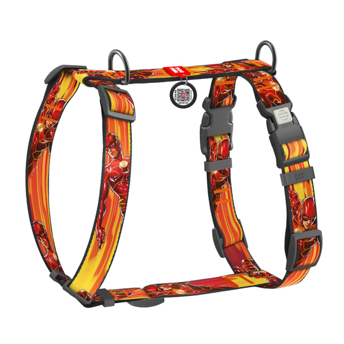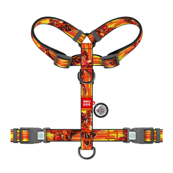 Шлея для собак анатомічна H-подібна WAUDOG Nylon з QR-паспортом, малюнок "Швидкість Флеша", пластиковий фастекс, XL, Ш 25 мм, А 60-100 см, В 68-100 см