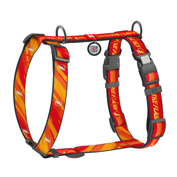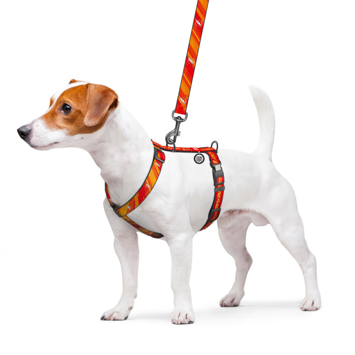 Шлея для собак анатомічна H-подібна WAUDOG Nylon з QR-паспортом, світловідбивна, малюнок "Флеш Лого", пластиковий фастекс, М, Ш 20 мм, А 38-60 см, В 45-60 см