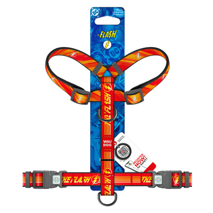 Шлея для собак анатомічна H-подібна WAUDOG Nylon з QR-паспортом, світловідбивна, малюнок "Флеш Лого", пластиковий фастекс, XL, Ш 25 мм, А 60-100 см, В 68-100 см