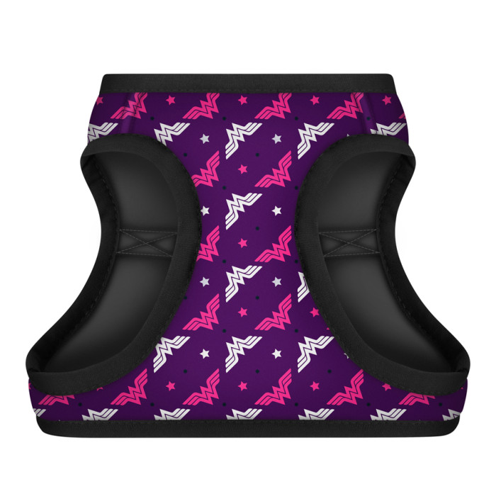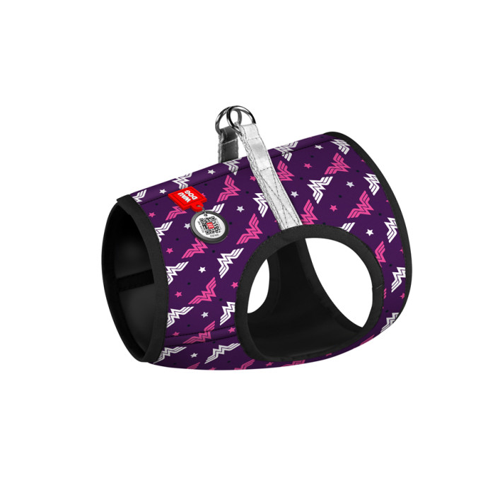 Шлея для собак м'яка WAUDOG Clothes з QR паспортом, малюнок "Диво-жінка фіолет", XS2, В 28-31 см, С 20-22 см