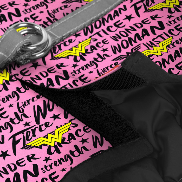 Шлея для собак м'яка WAUDOG Clothes з QR паспортом, малюнок "Диво-жінка в рожевому", S2, В 46-50 см, С 43-45 см