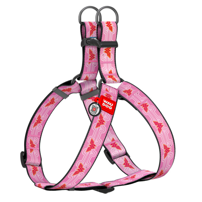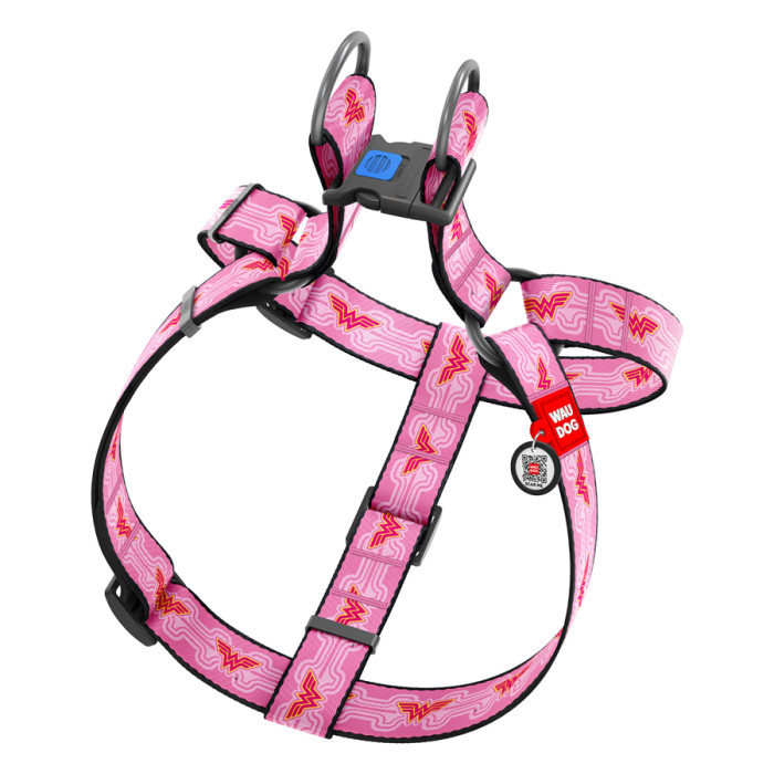 Шлея для собак WAUDOG Nylon з QR паспортом, малюнок "Чудо-жінка 1", пластиковий фастекс, XL, Ш 35 мм, А=В 70-100 см