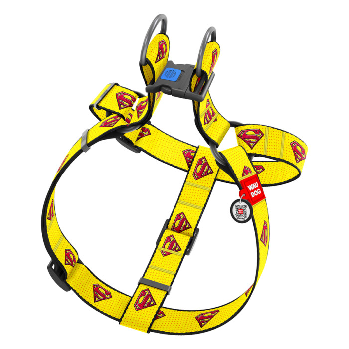 Шлея для собак WAUDOG Nylon з QR паспортом, малюнок "Супермен 2", пластиковий фастекс, XL, Ш 35 мм, А=В 70-100 см