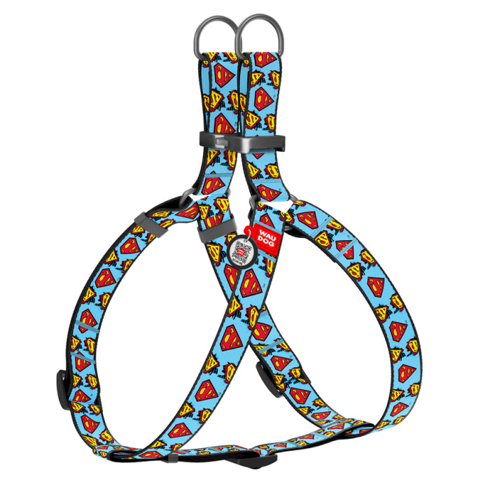 Шлея для собак WAUDOG Nylon з QR паспортом, малюнок "Супермен", металева пряжка-фастекс, Ш 20 мм, Дов 50-80 см