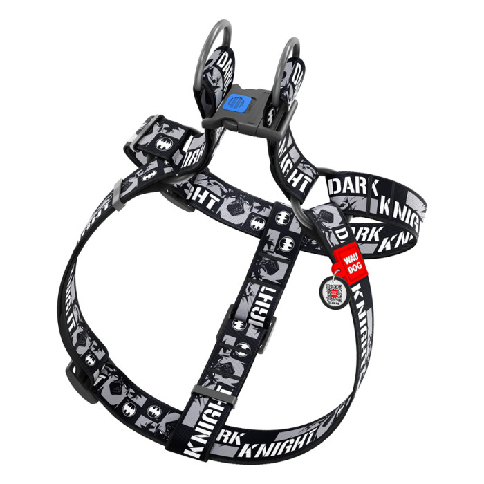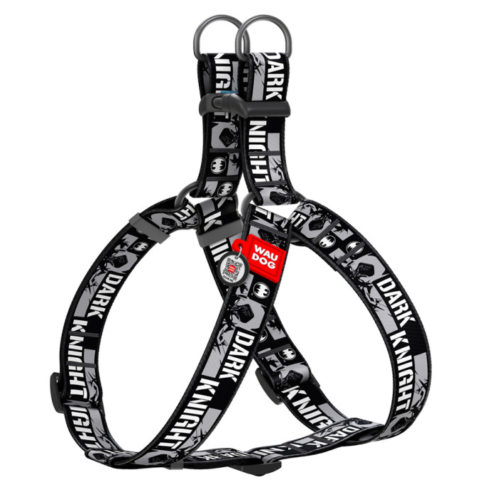 Шлея для собак WAUDOG Nylon з QR паспортом, малюнок "Темний лицар", пластиковий фастекс, XL, Ш 35 мм, А=В 70-100 см