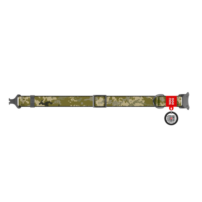 Нашийник для собак нейлоновий WAUDOG Nylon з QR-паспортом, малюнок "Мілітарі", металевий фастекс, XL, Ш 25 мм, Дов 37-58 см