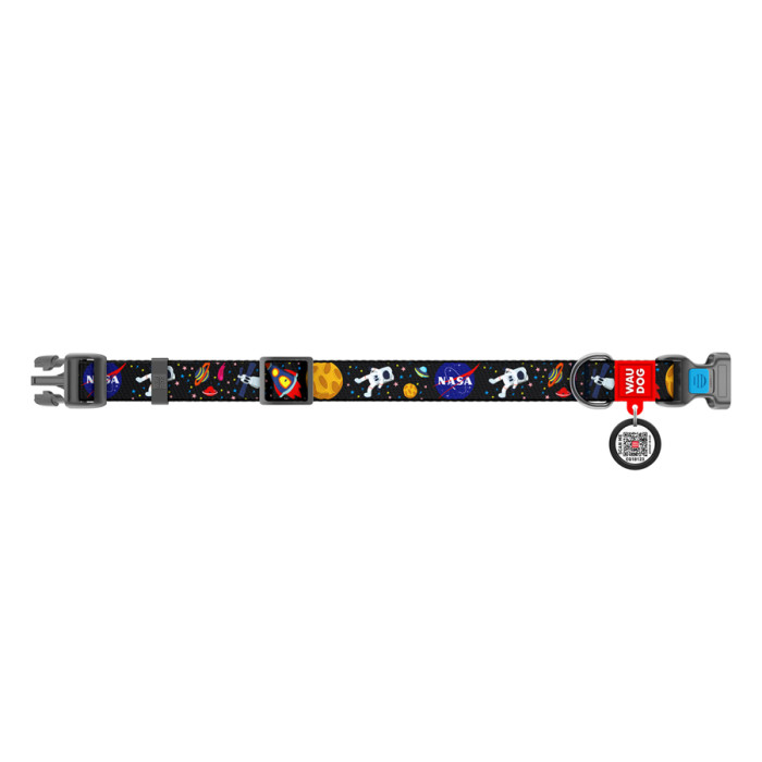 Нашийник для собак нейлоновий WAUDOG Nylon з QR паспортом, малюнок "NASA", пластиковий фастекс, Ш 20 мм, Дов 28-40 см
