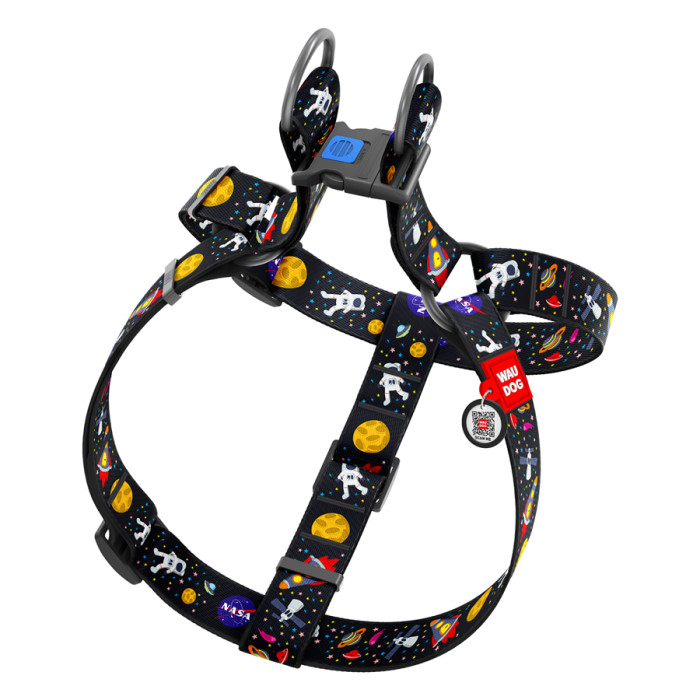 Шлея для собак WAUDOG Nylon з QR паспортом, малюнок "NASA", пластиковий фастекс, XL, Ш 35 мм, А=В 70-100 см