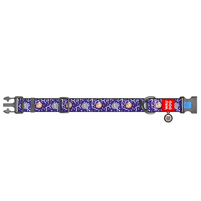 Нашийник для собак нейлоновий WAUDOG Nylon з QR паспортом, малюнок "Рік та Морті 2", пластиковий фастекс, XXL, Ш 35 мм, Дов 46-70 см