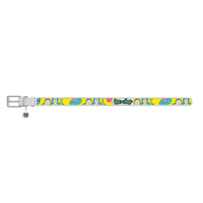 Нашийник для собак шкіряний WAUDOG Design з QR паспортом, малюнок "Рік та Морті 1", L, Ш 25 мм, Д 38-49 см білий