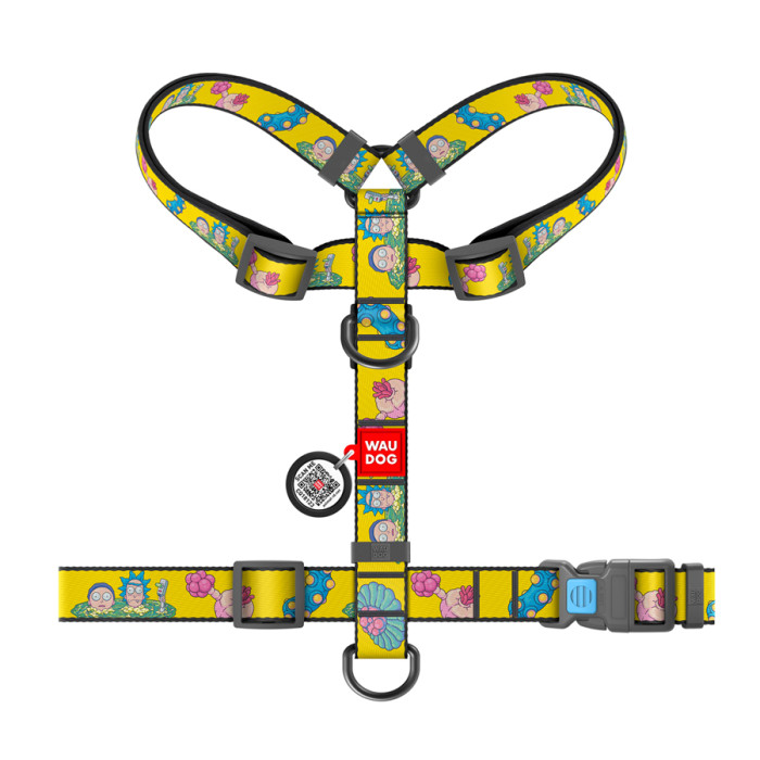 Завдяки особливій формі шлейка ідеально сідає на собаку та забезпечує йому максимальний комфорт. Шлей розроблений таким чином, що при натягу повідця не відбувається здавлювання дихальних шляхів тварини. Має 2 півкільця для повідця (верхнє та нижнє), що дозволяє більш рівномірно розподілити фізичне навантаження на опорно-руховий апарат собаки.Переваги:• Анатомічна конструкція• Пластиковий фастекс із замком• Зносостійкий нейлон• Наявність розумного адресника з QR паспортом