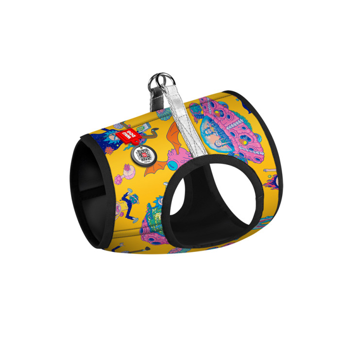 Стильна та зручна шлейка ідеально підходить для дрібних порід собак. Інноваційна липучка, яка виконує роль застібки, не чіпляється за собачу шерсть. Це робить процеси одягання/роздягання та шкарпетки комфортним для тварини. Додаткову безпеку вихованця забезпечує наявність світловідбиваючих елементів та QR паспорта.Переваги:•Ексклюзивний дизайн з героями серіалу Рік і Морті;•Адресник з QR паспортом;•Світловідбивні елементи.