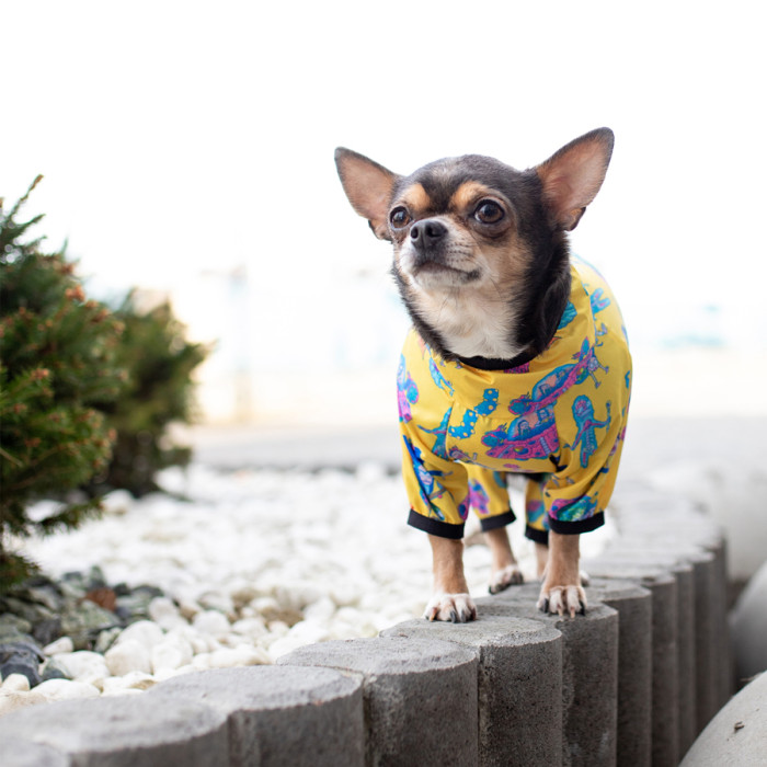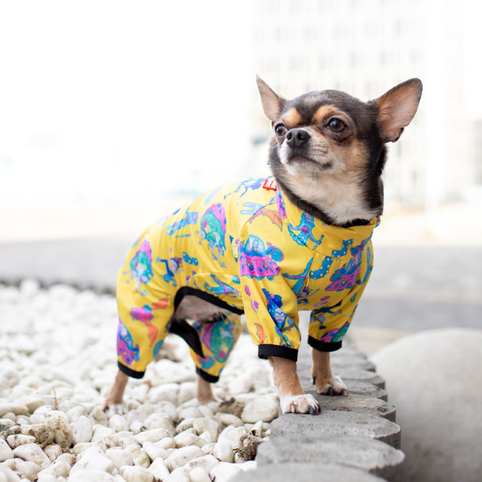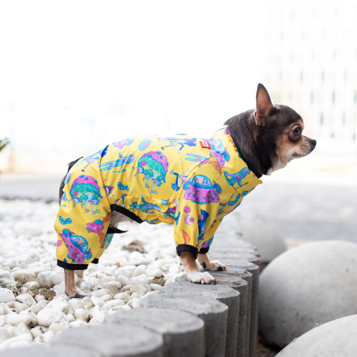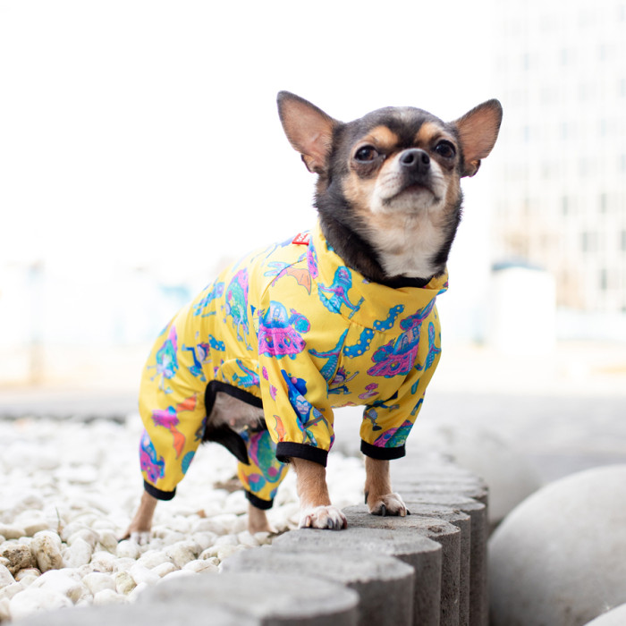 Дощовик для собак призначений для прогулянок у дощову погоду. Він закриває живіт і всі 4 лапи тварини і надійно захищає вихованця від вологи та бруду, а також зберігає тепло в холодну та вітряну погоду. Дощовик закривається за допомогою блискавки, яка застібається зверху вниз і не захоплює шерсть тварини. Високий комір додатково захищає голову собаки від вітру.Переваги:•Стильний дизайн;•Гузинки на лапках;•Застібка-блискавка;•Високий комір;•Не сковує рух тварини.