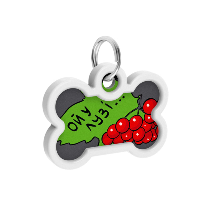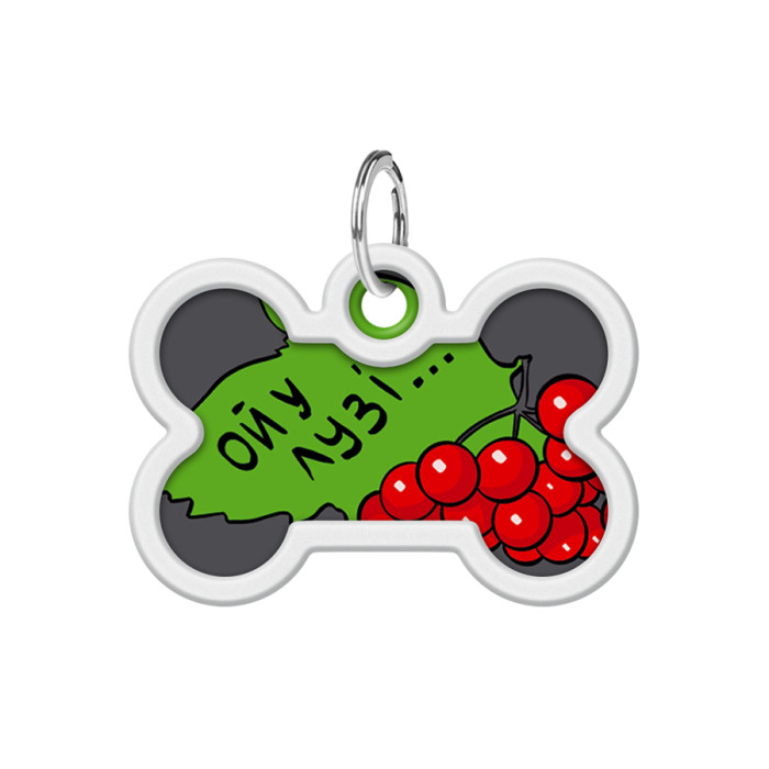 Адресник для собак і котів металевий WAUDOG Smart ID з QR паспортом, малюнок "Калина", кістка, Д 40 мм, Ш 28 мм