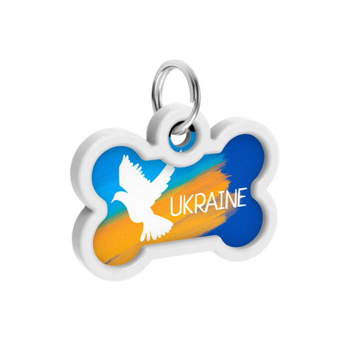 Адресник для собак і котів металевий WAUDOG Smart ID з QR паспортом, малюнок "Прапор", кістка, Д 40 мм, Ш 28 мм