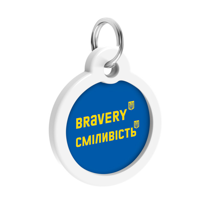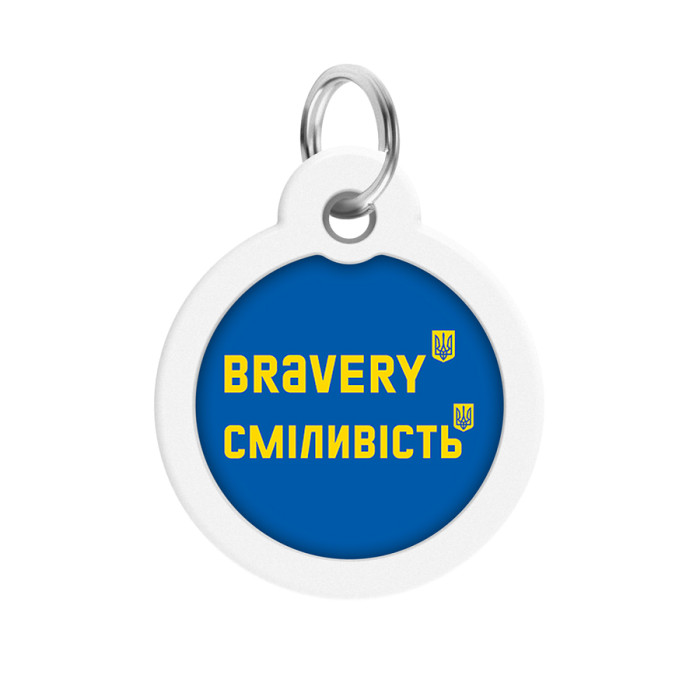 Адресник для собак і котів металевий WAUDOG Smart ID з QR паспортом, малюнок "Сміливість", коло, Д 30 мм