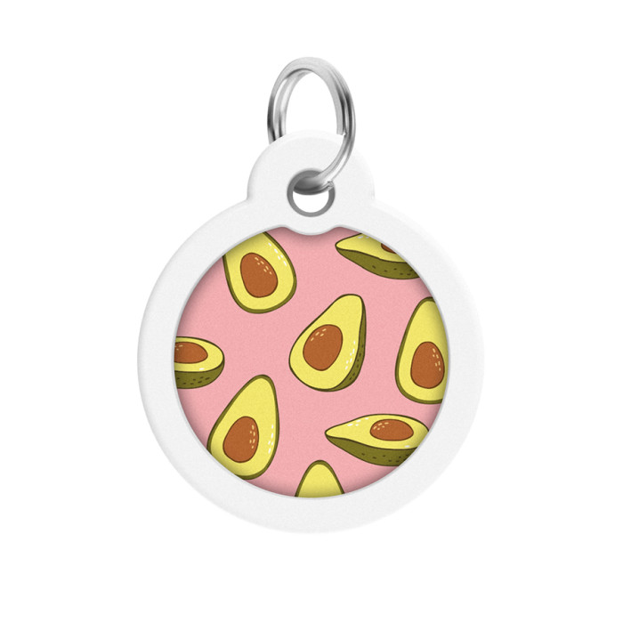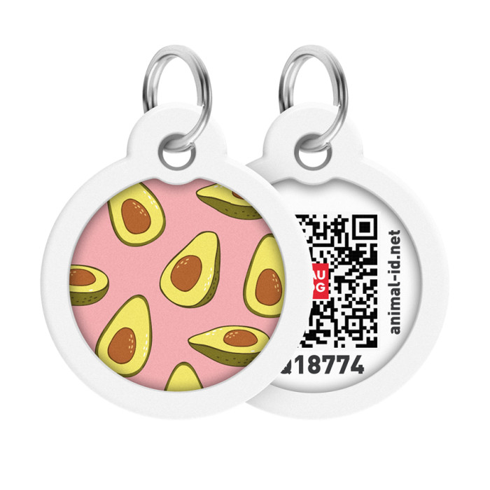 Адресник для собак і котів металевий WAUDOG Smart ID з QR паспортом, малюнок "Авокадо 2", коло, Д 30 мм
