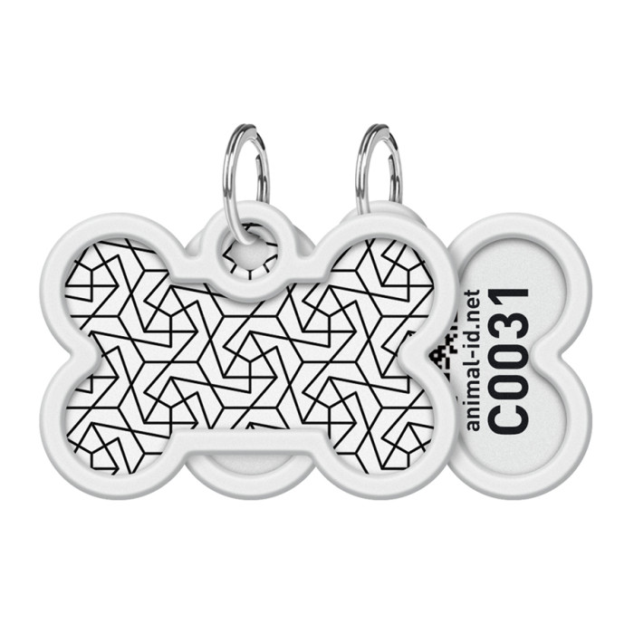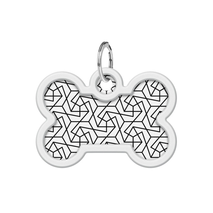 Адресник для собак і котів металевий WAUDOG Smart ID з QR паспортом, малюнок "Геометрія", кістка, Д 40 мм, Ш 28 мм