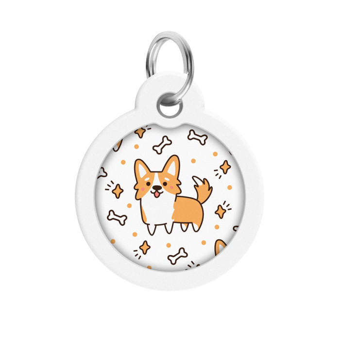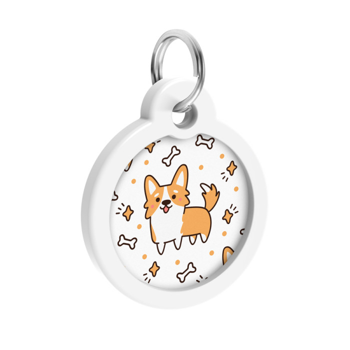 Адресник для собак і котів металевий WAUDOG Smart ID з QR паспортом, малюнок "Коргі", коло, Д 30 мм