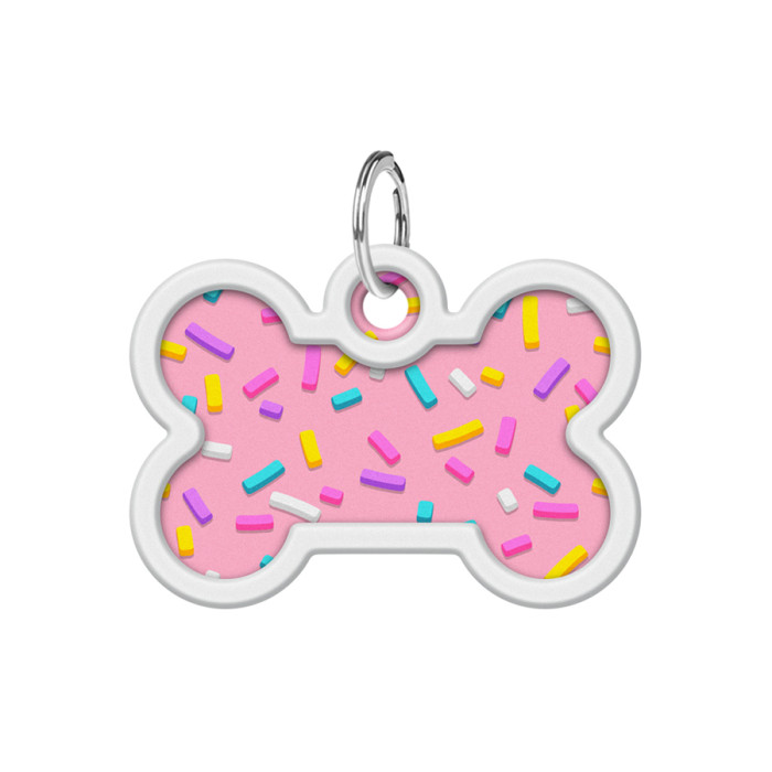 Адресник для собак і котів металевий WAUDOG Smart ID з QR паспортом, малюнок "Маршмеллоу", кістка, Д 40 мм, Ш 28 мм