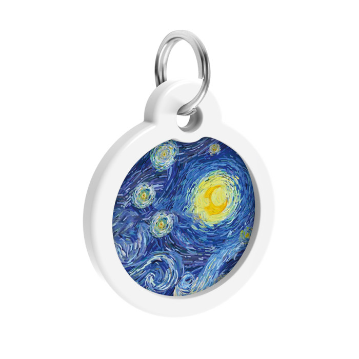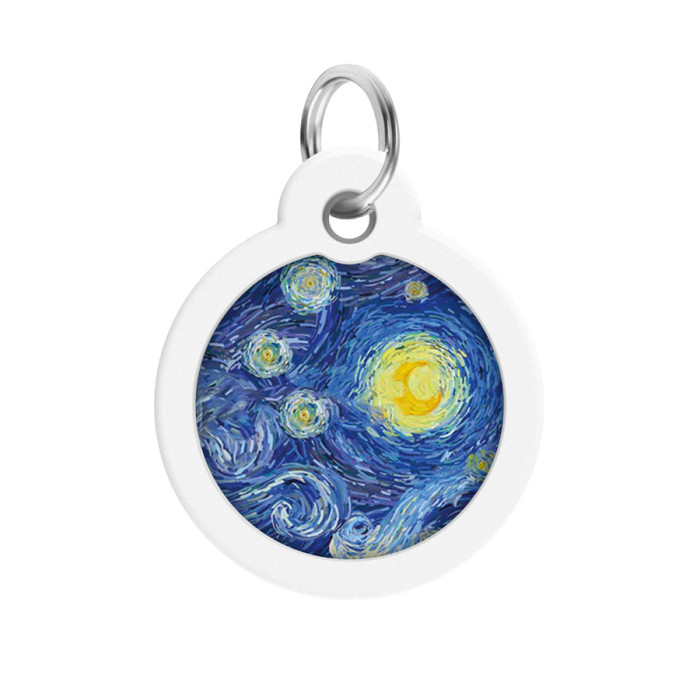 Адресник для собак і котів металевий WAUDOG Smart ID з QR паспортом, малюнок "Водяні лілії", коло, Д 30 мм