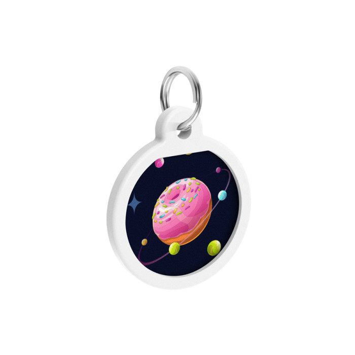 Адресник для собак та котів металічний WAUDOG Smart ID з QR паспортом, малюнок "Всесвіт пончиків", круг, Д 25 мм
