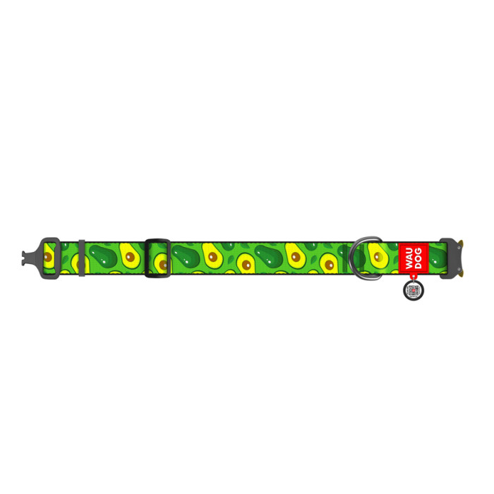 Нашийник для собак нейлоновий WAUDOG Nylon з QR паспортом, малюнок "Авокадо", металева пряжка-фастекс, XXL, Ш 35 мм, Д 46-70 см