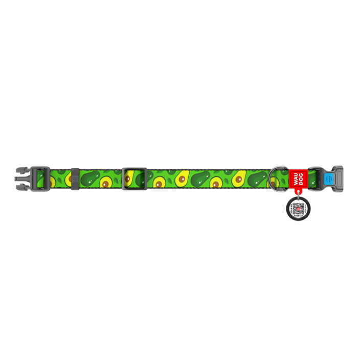 Нашийник для собак нейлоновий WAUDOG Nylon з QR паспортом, малюнок "Авокадо", пластиковий фастекс, Ш 25 мм, Дов 33-49 см