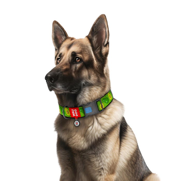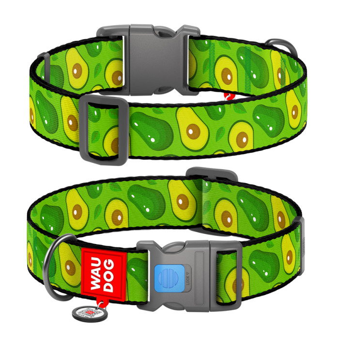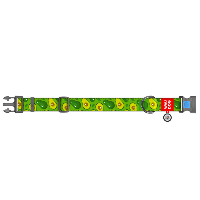 Нашийник для собак нейлоновий WAUDOG Nylon з QR паспортом, малюнок "Авокадо", пластиковий фастекс, XXL, Ш 35 мм, Дов 46-70 см