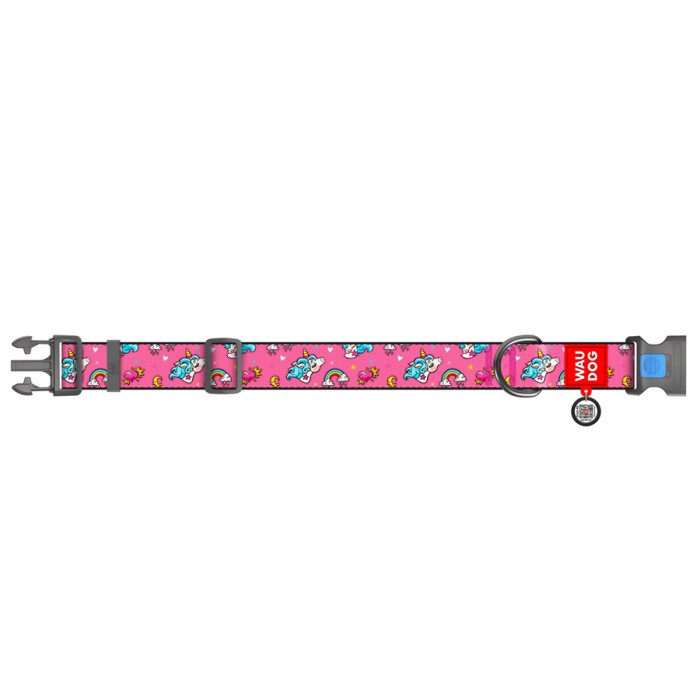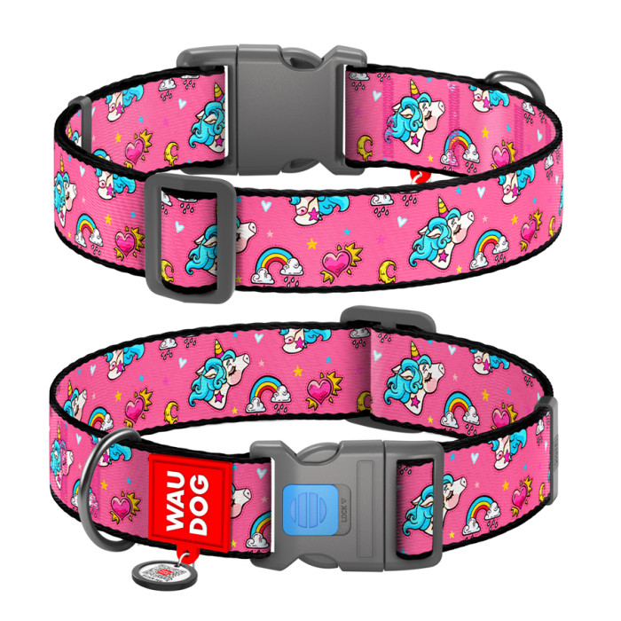 Нашийник для собак нейлоновий WAUDOG Nylon з QR паспортом, малюнок "Єдиноріг", пластиковий фастекс, XXL, Ш 35 мм, Дов 46-70 см