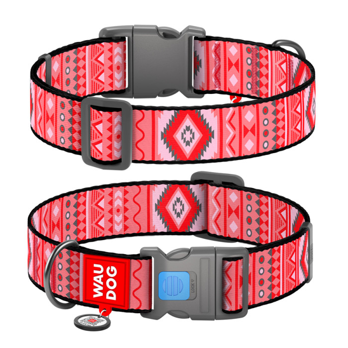 Нашийник для собак нейлоновий WAUDOG Nylon з QR паспортом, малюнок "Етно червоний", пластиковий фастекс, XXL, Ш 35 мм, Дов 46-70 см