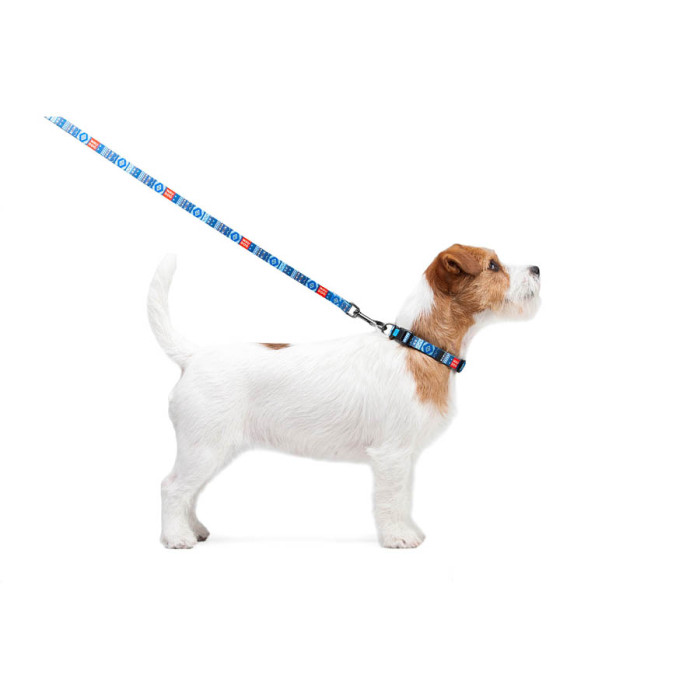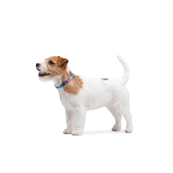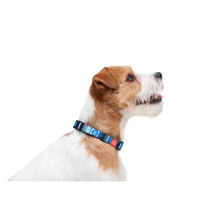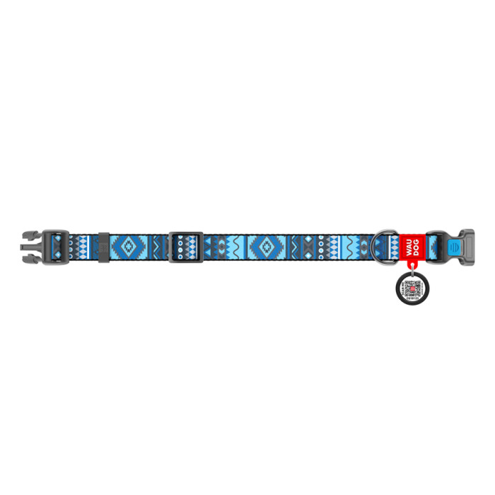 Нашийник для собак нейлоновий WAUDOG Nylon з QR паспортом, малюнок "Етно синій", пластиковий фастекс, Ш 15 мм, Дов 25-35 см