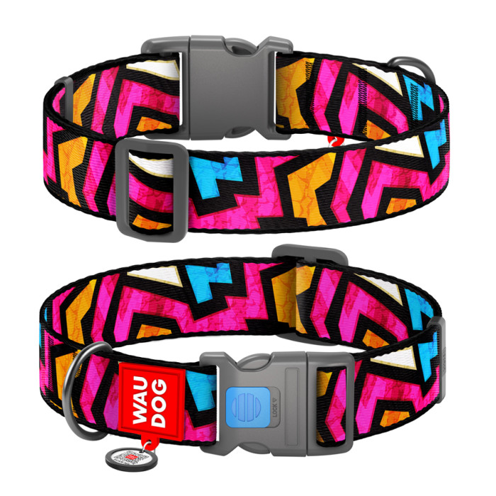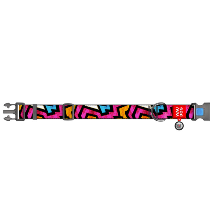 Нашийник для собак нейлоновий WAUDOG Nylon з QR паспортом, малюнок "Графіті", пластиковий фастекс, XXL, Ш 35 мм, Дов 46-70 см