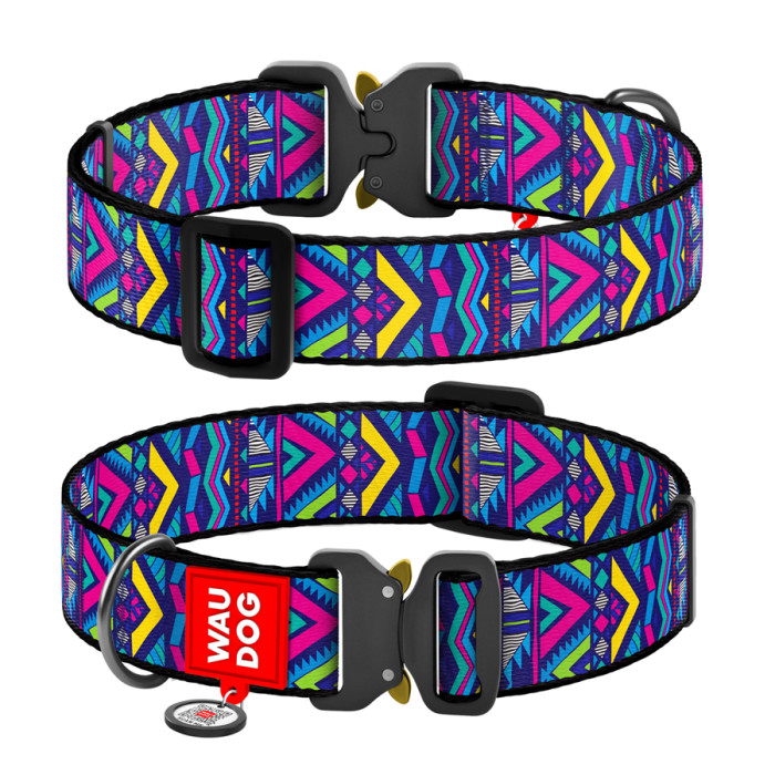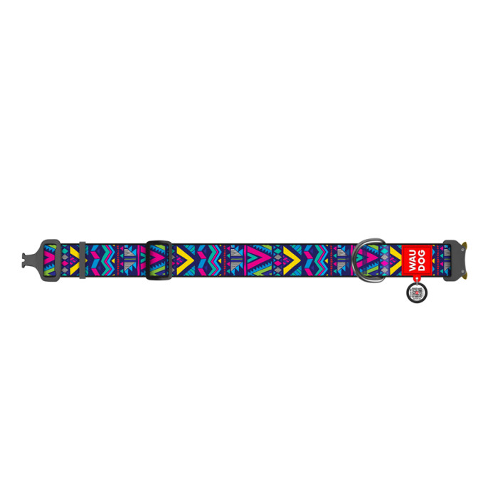 Нашийник для собак нейлоновий WAUDOG Nylon з QR паспортом, малюнок "Інді", металева пряжка-фастекс, XXL, Ш 35 мм, Д 46-70 см