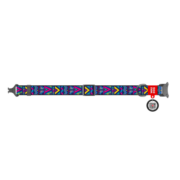 Нашийник для собак нейлоновий WAUDOG Nylon з QR паспортом, малюнок "Інді", металічна пряжка-фастекс, Ш 25 мм, Дов 37-58 см