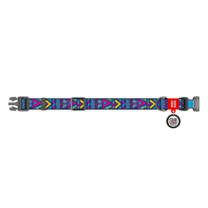 Нашийник для собак нейлоновий WAUDOG Nylon з QR паспортом, малюнок "Інді", пластиковий фастекс, Ш 25 мм, Дов 33-49 см