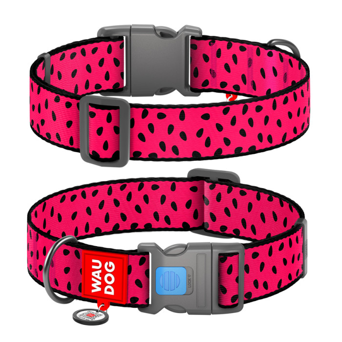 Нашийник для собак нейлоновий WAUDOG Nylon з QR паспортом, малюнок "Кавун", пластиковий фастекс, XXL, Ш 35 мм, Дов 46-70 см