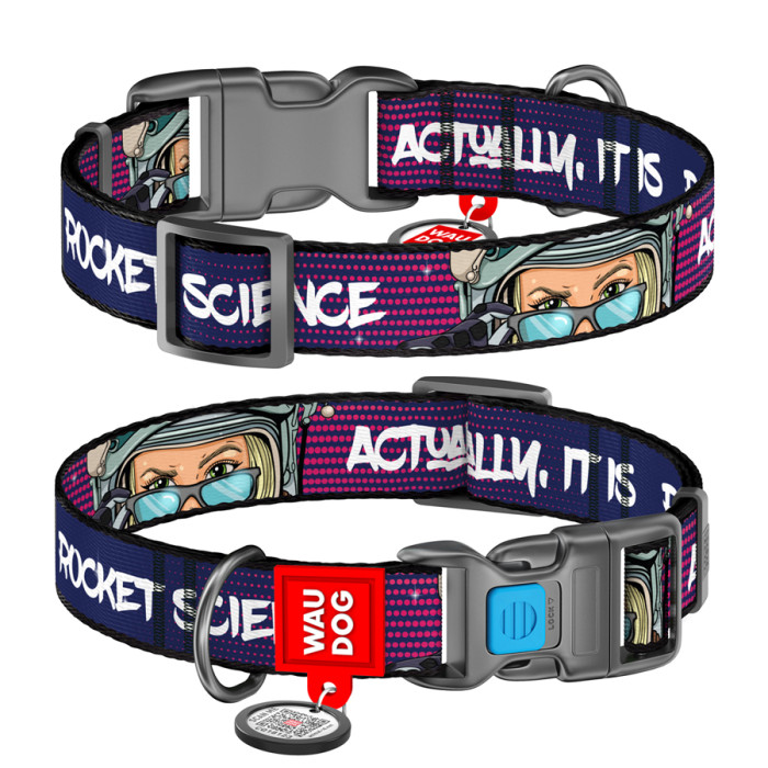 Нашийник для собак нейлоновий WAUDOG Nylon з QR-паспортом, малюнок "Космос. Ракетобудування", пластиковий фастекс, M, Ш 20 мм, Д 24-40 см
