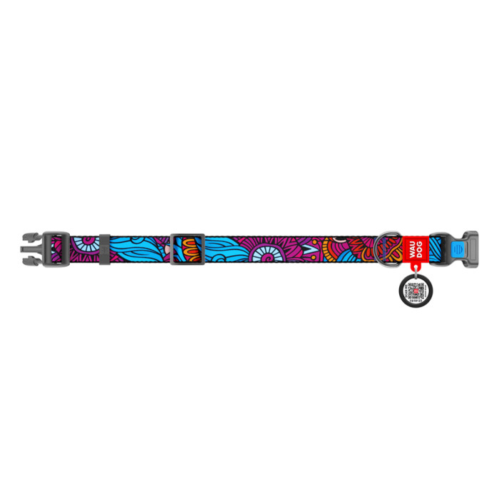 Нашийник для собак нейлоновий WAUDOG Nylon з QR паспортом, малюнок "Літо", пластиковий фастекс, Ш 15 мм, Дов 25-35 см