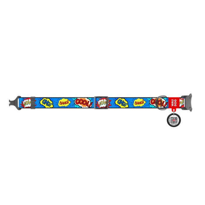 Нашийник для собак нейлоновий WAUDOG Nylon з QR паспортом, малюнок "ВАУ", металічна пряжка-фастекс, Ш 25 мм, Дов 37-58 см