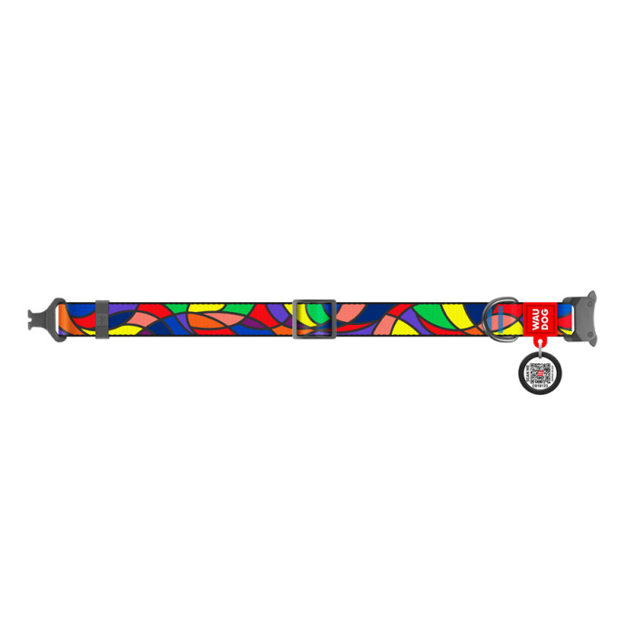 Нашийник для собак нейлоновий WAUDOG Nylon з QR паспортом, малюнок "Вітраж", металічна пряжка-фастекс, Ш 25 мм, Дов 33-49 см