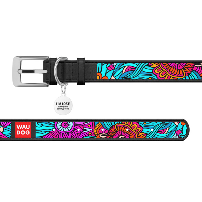 Амуніція WAUDOG – нова серія шкіряної амуніції, виготовленої з якісної натуральної шкіри, що прикрашена повнокольоровим зносостійким малюнком. Завдяки яскравим і привабливим візерункам ці вироби просто не зможуть залишитися непоміченими.Довжина нашийника підбирається відповідно до обхвату шиї хвостатого друга, який визначають вимірювальною стрічкою. При цьому правильно додавати до отриманого результату від 2 см (для середніх і дрібних порід) до 5 см (для великих), щоб нашийник не натирав і не здавлював шию тварини.