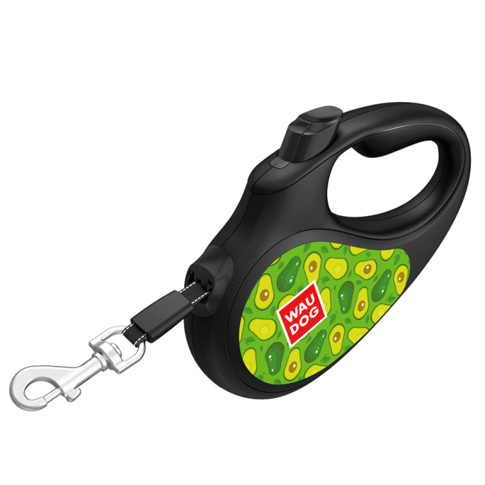 Повідець-рулетка для собак WAUDOG R-leash, малюнок "Авокадо", XS, до 12 кг, 3 м, світловідбиваюча стрічка чорний
