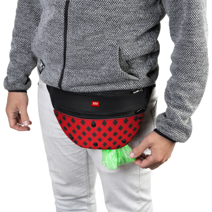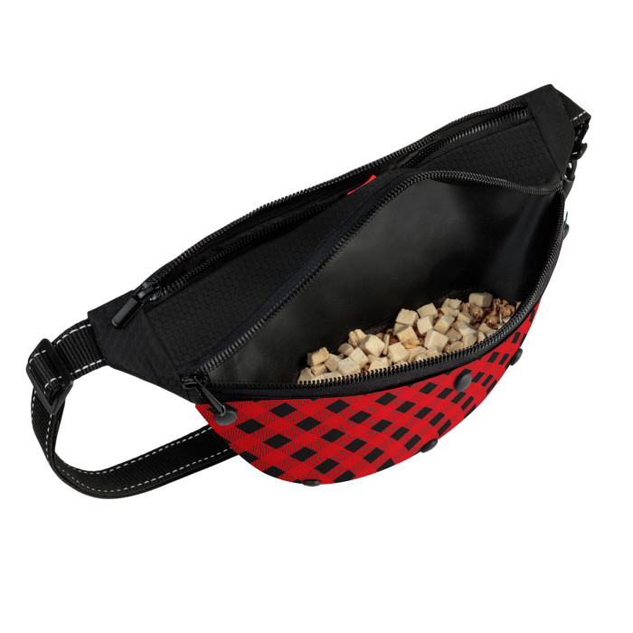 Поясна сумка-бананка WAUDOG Family для корму та аксесуарів, малюнок "Шотландка червона", розмір 33*17*10 см